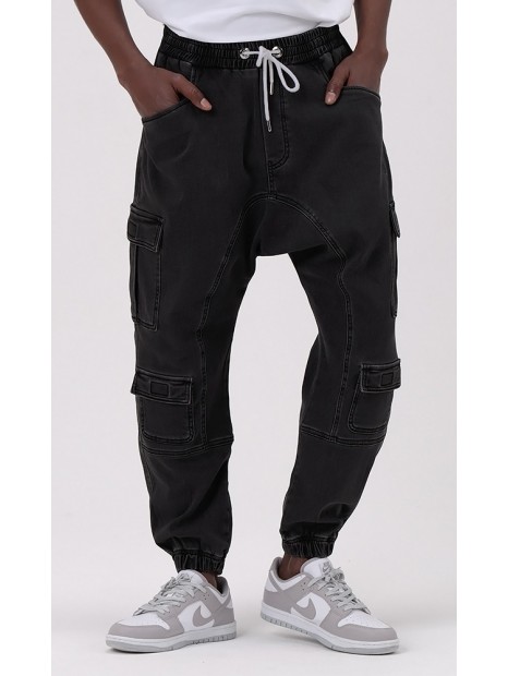 Sarouel Jean cargo Stretch - Noir - Qabail
